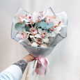 Сердце из розы и орхидей в корзине