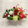 Корзинка с розой, эвкалиптом и брунией