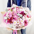 Букет голубых хризантем и розовых роз
