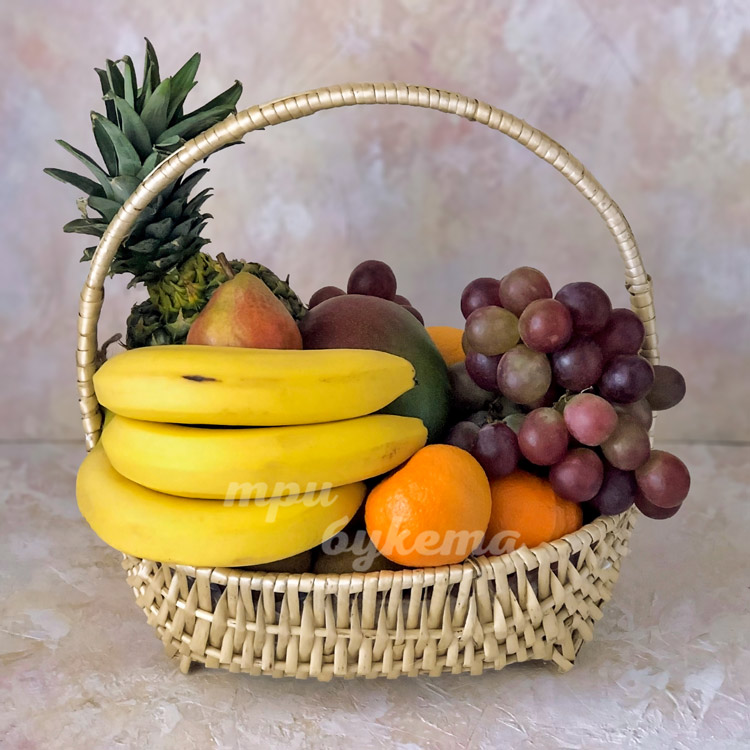 Ананас, виноград и бананы в корзине