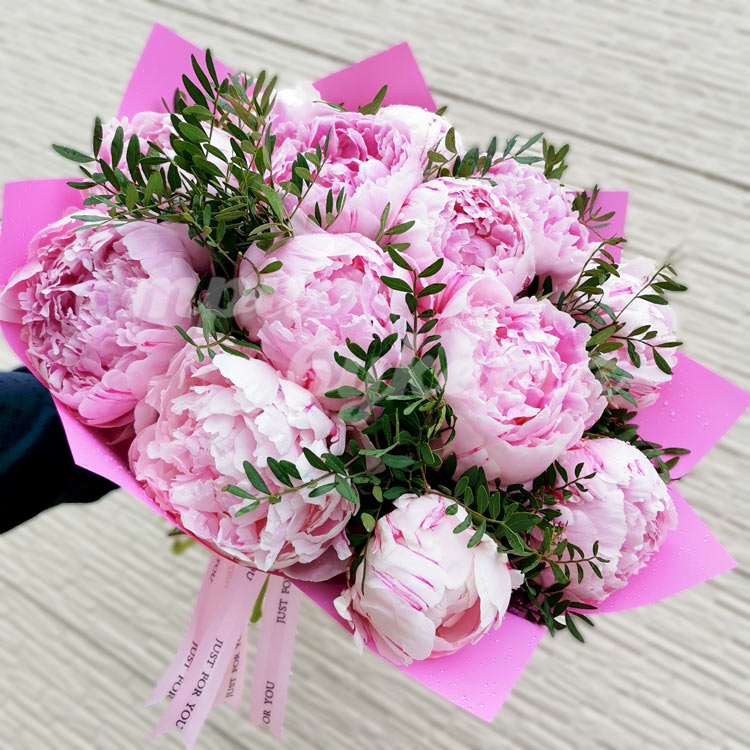 Букет из 13 розовых пионов