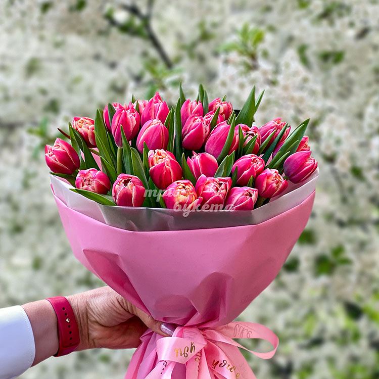 - Розовые тюльпаны, 33 шт.