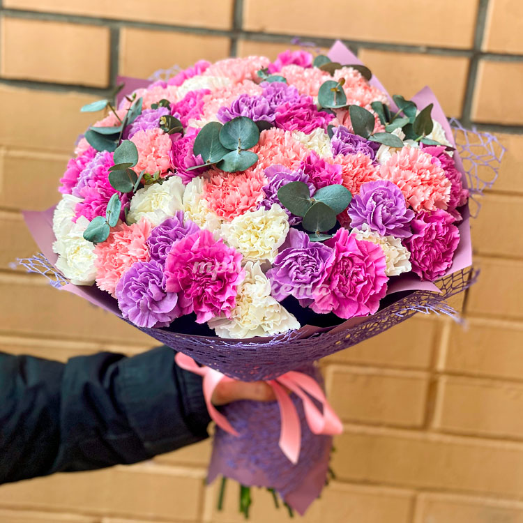 Букет из 75 разноцветных гвоздик