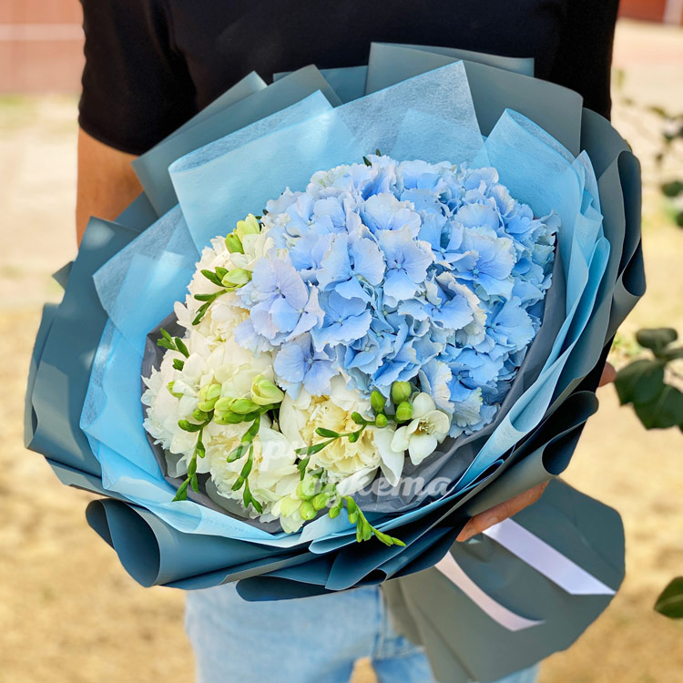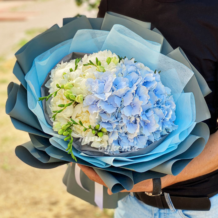 Букет из гортензии и белых пионов
