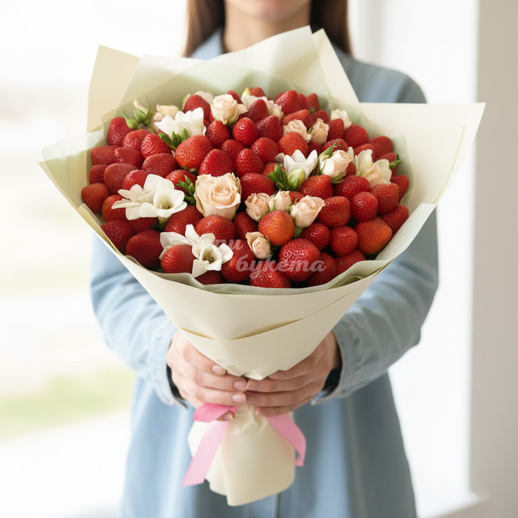 Букет клубники и фрезий