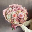 Букет розовых роз, пионов и гортензий