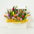 Хризантемы и желтые орхидеи в ящичке