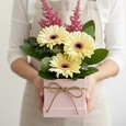 Каллы и розы в шляпной коробке