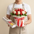 Клубника с цветами в ящичке