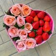 Коробка с клубникой и белой орхидеей