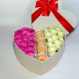 Коробка-сердце с клубникой и хризантемами