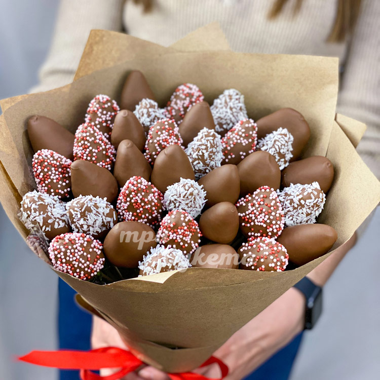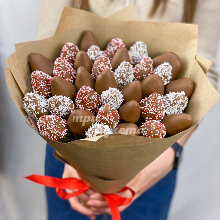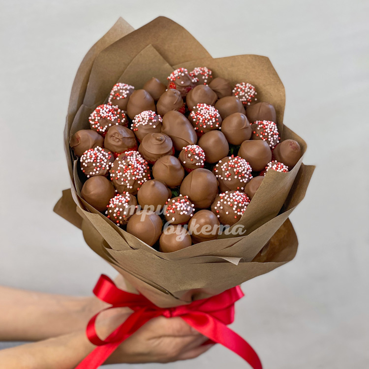 Крафт букет с клубникой в шоколаде