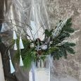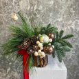 Новогодний букет орхидей, роз и хвои