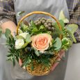 Шляпная коробка кремовых роз с орхидеями