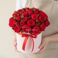 Шляпная коробка роз, эустом и гортензии