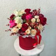 Шляпная коробка роз Шиммер с орхидеями