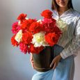 Яркая корзина хризантем, ранункулюсов и роз